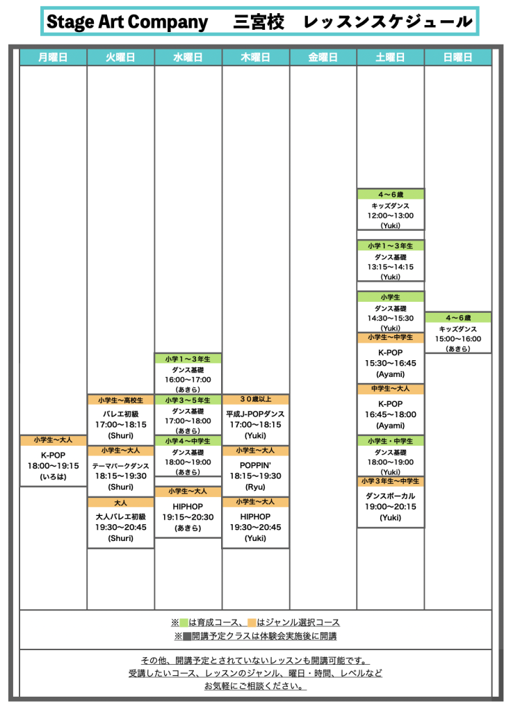 Stage Art Company レッスンスケジュール