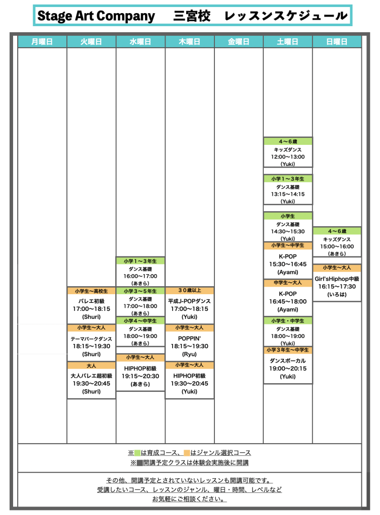Stage Art Company レッスンスケジュール
